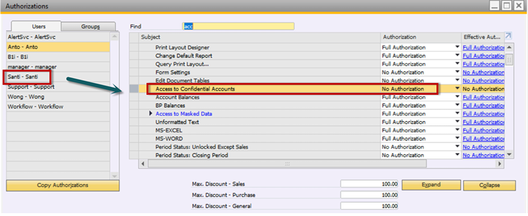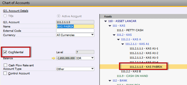 Confidential Account : Setup account dimana account-account tertentu yang hanya boleh dilihat oleh user tertentu saja.